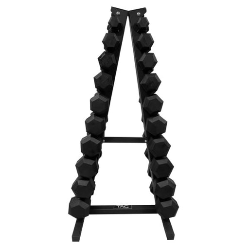 View full detailsThe TAG Fitness HEX Vertical A-Frame Dumbbell Rack is a heavy-duty storage solution designed to keep your gym organized while maximizing floor spac...